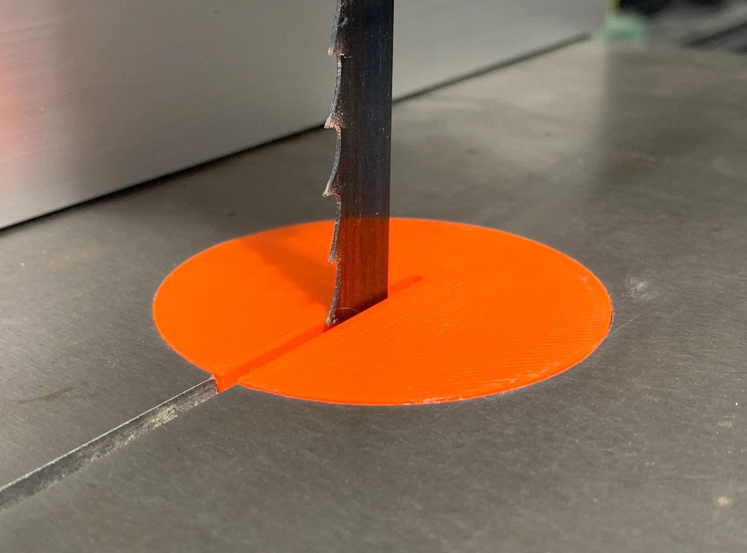 Slowly raise blade through insert to create zero clearance slot