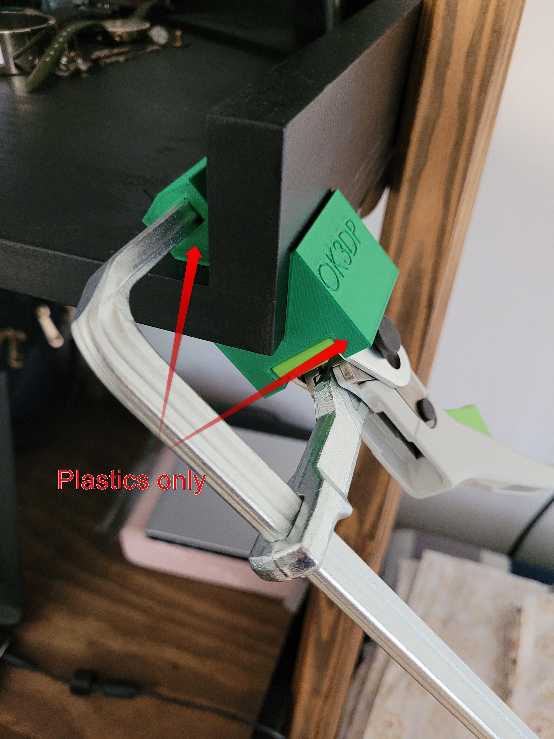 These corner clamps are compatible with Festool Quick Grip clamps to hold 2 pieces of material together at 90°