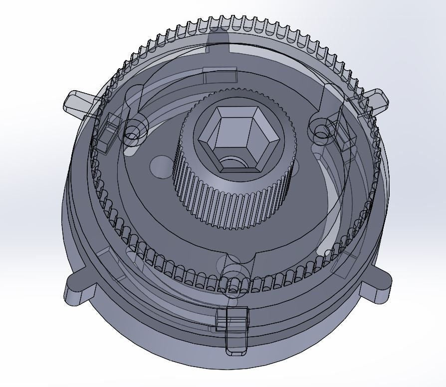 I simplified the lifting mechanism from the original nabs here. You will have to undo the bolts and then twist the nab. The halves operate on tapered slots giving you the offset when it is locked. Please see the last picture for more details. The top part in the original had a thread on the inside. I just inserted a nut in the plastic for the same result. The 3 bolts you can see in the pictures are held in place by 3 nuts which slide inside a tapered hex shaped slot